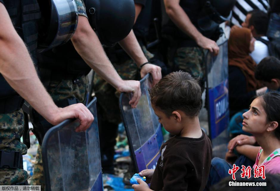 马其顿警方与非法移民激烈冲突 儿童受惊吓嚎啕大哭