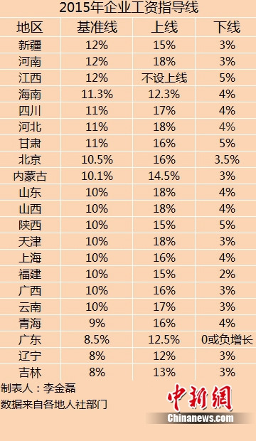 - [ 11-25]21省份公布2015年企业工资指导线 同比多持平或下调