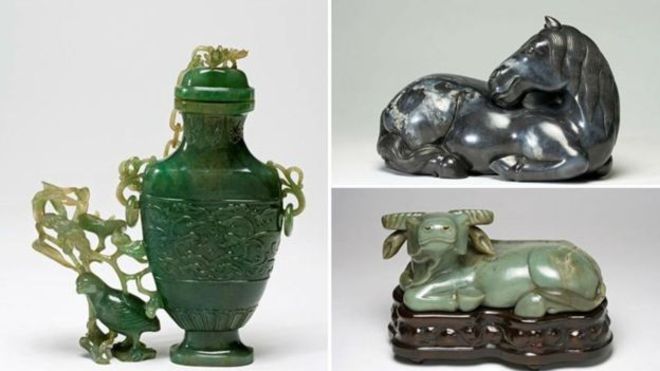 杜伦大学东方博物馆失窃的文物包括一个玉碗和一件瓷雕(图片来源:杜伦警察局)
