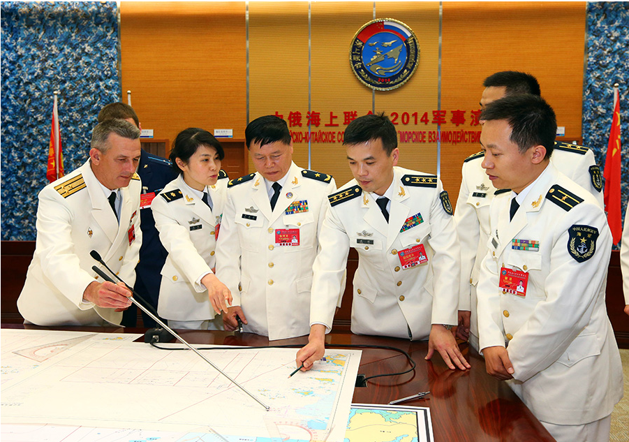 中俄双方指挥员在联合指挥部对参演兵力进行部署