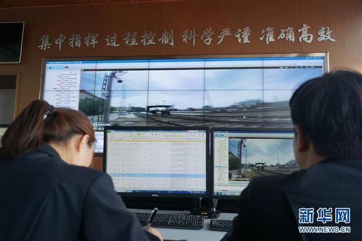 格尔木工务段线路养护作业情况实时呈现在工务段安全生产调度指挥中心的大屏幕上(7月7日摄)