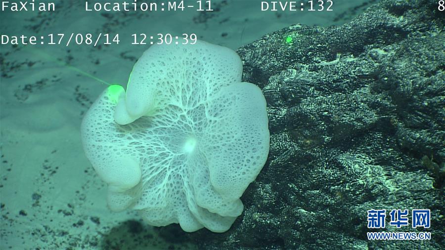 我国新一代远洋综合科考船“科学”号正在西太平洋卡罗琳海山进行科学考察,科学家利用“发现”号遥控无人潜水器对海山进行了精细调查,并拍摄了大量视频和图片。新华社发(徐奎栋摄)