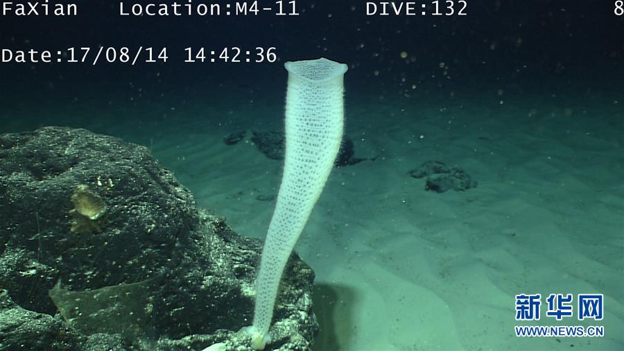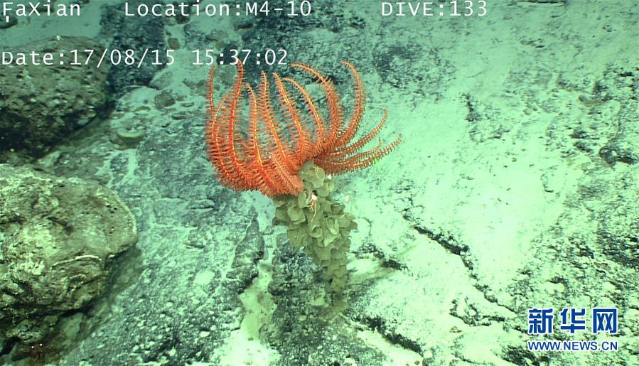 我国新一代远洋综合科考船“科学”号正在西太平洋卡罗琳海山进行科学考察,科学家利用“发现”号遥控无人潜水器对海山进行了精细调查,并拍摄了大量视频和图片。新华社发(徐奎栋摄)