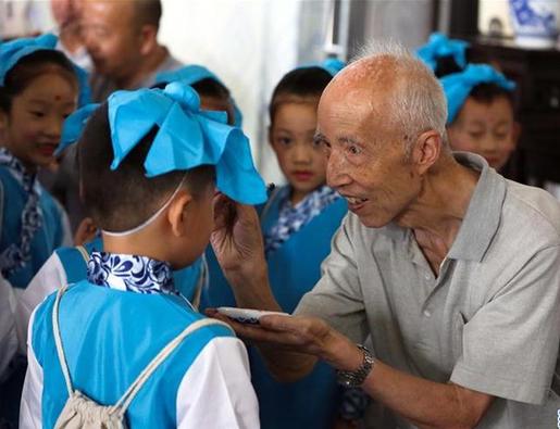 9月2日,钱氏后人在钱穆钱伟长故居为小朋友点朱砂启智。当日上午,江苏无锡市百名一年级新生齐聚钱穆钱伟长故居举行开蒙礼。小朋友们在钱氏后人的引导下,进行了正衣冠、行拜师礼、朱砂启智、开笔破蒙等环节,顺利完成人生中最重要的启蒙仪式。新华社发(丁罕摄)