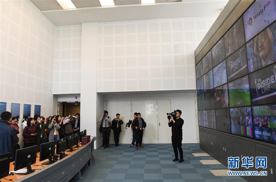 媒体记者在四达时代集团参观采访(10月13日摄)。中国共产党第十九次全国代表大会10月18日将在北京召开。从12日开始十九大新闻中心组织包括科技文化创新在内的15条线路的采访活动,让中外记者近距离了解中国、了解中国共产党。新华社记者陈晔华 摄