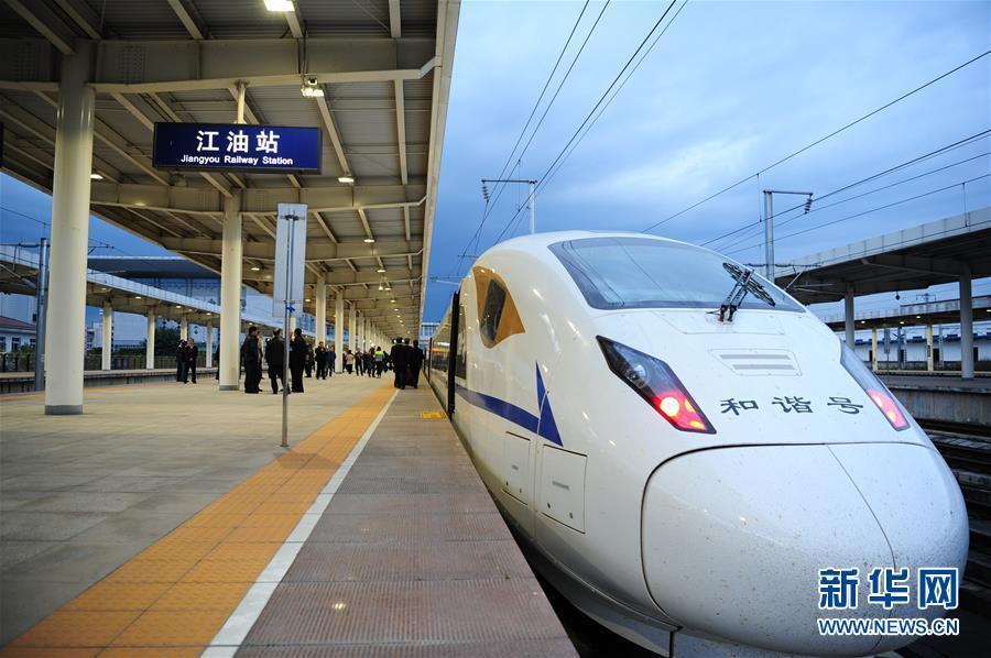 55601次动车组试验列车抵达四川江油站(11月13日摄)
