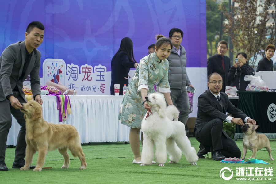 11曰19日,在杭州市古墩路印象城广场上,正在举行“大地之声·爱及生灵”2017年中国杭州宠物嘉年华。本次犬赛是在全国范围内举行的积分排行榜大赛杭州站,来自全国各地30余种130只的赛级犬参加本次大赛角逐,竞争相当激烈。(浙江在线记者杨晓轩 李翔 于诗奇 摄)