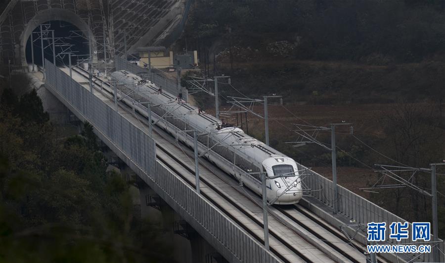 参加西成高铁模拟运行的CRH3A型动车组列车通过秦岭南麓的洋县龙亭镇赵家岭隧道(11月22日摄)。 “蜀道之难,难于上青天!”1200年前,唐朝大诗人李白置身雄奇险峻的秦巴大山,写下千古绝唱《蜀道难》。而今,我国第一条穿越秦岭的西成高铁通车在即,“蜀道难”将成为历史。秦蜀之间的道路素以艰险著称,据史料记载中国古代连接陕西和四川这两大地区的只有蜿蜒在秦巴山区中的子午、傥骆、褒斜、金牛等七条古道。从秦汉时的古栈道到2007年9月西安至成都高速公路的全线开通,跨越了2000多年;而从高速公路到高速铁路的开通,仅仅用了10年。蜀道的演进,是一个又一个奇迹的创造。 “西成高铁秦岭段总长度为135公里,其中隧道就占到127公里。途经的陕西段长度为343.6公里,而桥梁和隧道总长更是达到321公里,占线路总长的93%。”西成高铁陕西公司西成指挥部副指挥长赵定江说,这条高铁建设过程中深挖隧、架大桥,为世所罕见。西成高铁全长643公里,设计时速为250公里。开通后,成都与西安两地铁路旅程将由目前约16小时缩短到3小时左右。特别是秦巴山腹地的陕西省汉中市,到西安由4个小时缩短成1小时、到成都6小时缩短到2小时。人们中午在西安吃羊肉泡馍,傍晚可以在成都休闲逛街。昔日“蜀道难”阻挡了秦巴地区的经济发展和百姓们的致富脚步。如今,西成高铁让该区域串联一起,诸多贫困地区将一步跃入高铁时代,迎来全新的发展机遇。新华社记者吴晓初摄 |