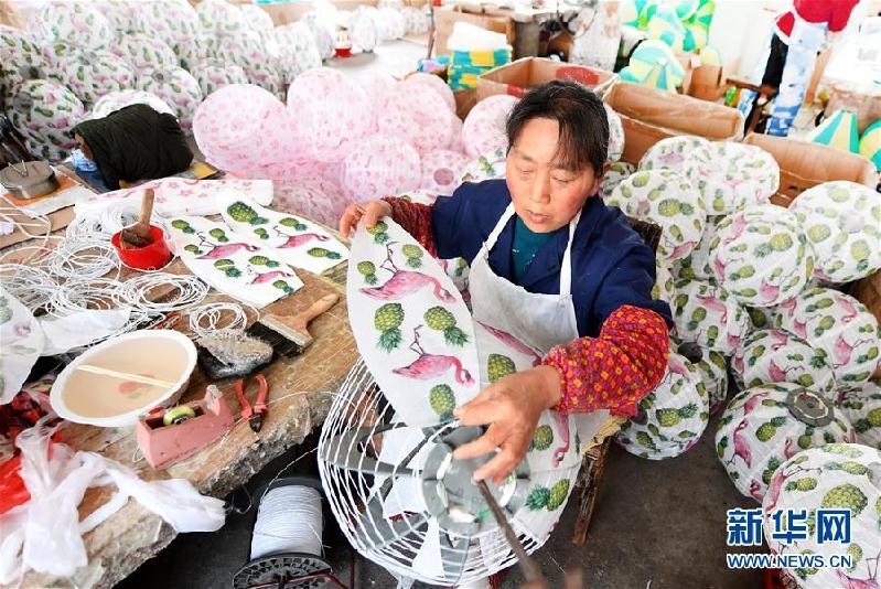银丰工艺厂工人在制作灯笼(3月21日摄)。湖北省崇阳县沙坪镇素有制作手工灯笼工艺品的传统,如今,这门手艺为农村留守妇女开辟了一条既能兼顾家庭,又能就业增收的门路。该镇银丰工艺厂现有200多名职工,以周边乡村的妇女为主,她们手工生产的金粉灯笼多年来一直远销欧洲、东南亚20多个国家和地区,深受外商和客户的青睐。新华社记者程敏 摄