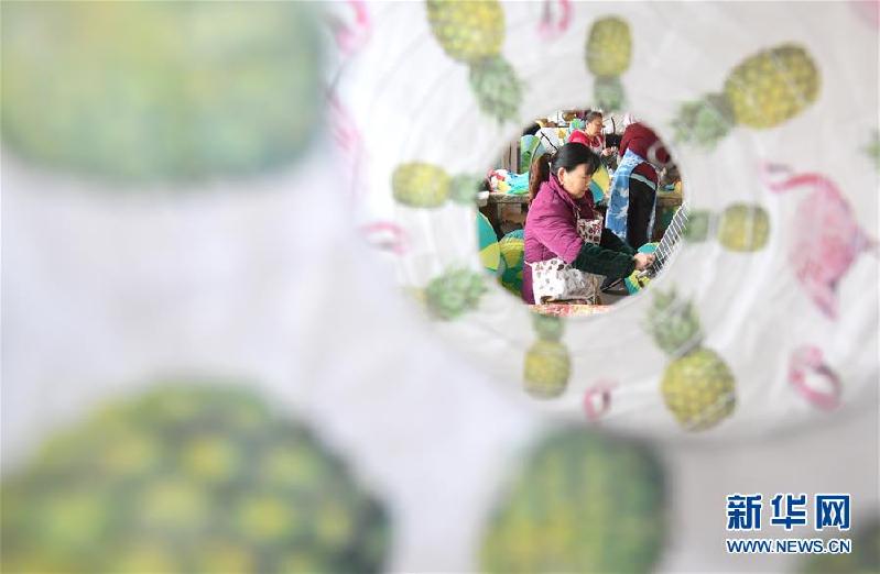 银丰工艺厂的工人们在抓紧制作灯笼(3月21日摄)。湖北省崇阳县沙坪镇素有制作手工灯笼工艺品的传统,如今,这门手艺为农村留守妇女开辟了一条既能兼顾家庭,又能就业增收的门路。该镇银丰工艺厂现有200多名职工,以周边乡村的妇女为主,她们手工生产的金粉灯笼多年来一直远销欧洲、东南亚20多个国家和地区,深受外商和客户的青睐。新华社记者程敏 摄