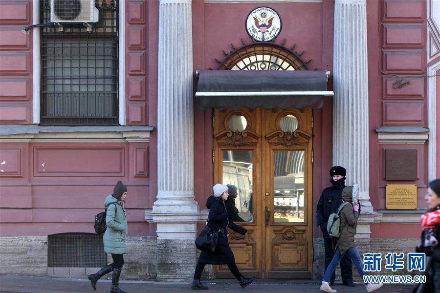 3月30日,一名警察在美国驻俄罗斯圣彼得堡总领馆前执勤。俄罗斯外交部29日宣布,将驱逐60名美国驻俄外交官并关闭美国驻圣彼得堡总领馆,以作为对美国驱逐俄罗斯外交官的回应。 新华社记者鲁金博摄 |