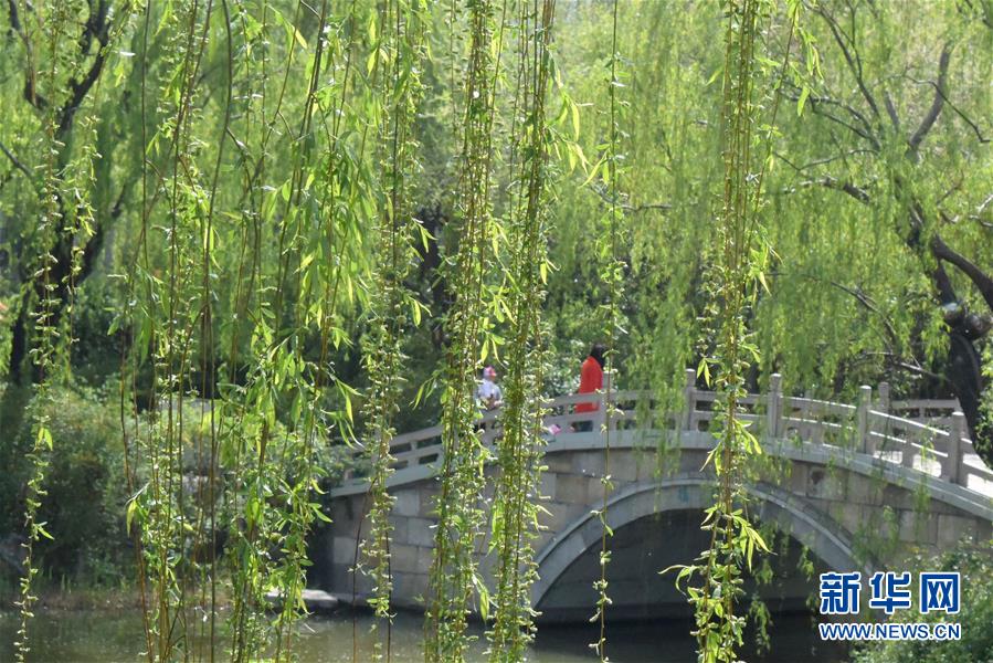 4月8日,市民和游客在济南大明湖景区游览。近日,天气晴朗气温上升,济南大明湖景区春光明媚风景如画,吸引众多市民和游客前来游览。大明湖位于济南市区,湖岸种植有大量的柳树,以“四面荷花三面柳,一城山色半城湖”的风光闻名。新华社记者徐速绘 摄