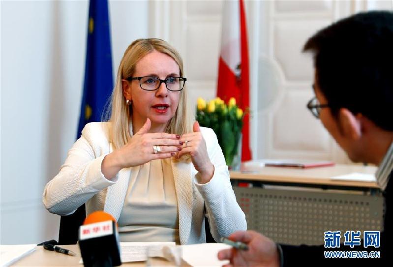 4月4日,奥地利数字与经济事务部长玛格丽特·施兰伯克在维也纳接受新华社记者采访。奥地利数字与经济事务部长玛格丽特·施兰伯克近日接受新华社记者采访时说,奥地利反对贸易保护主义,认为应采取对话协商的办法解决贸易争端。针对近来美国特朗普政府贸易保护主义行为引发的中美、美欧贸易摩擦,施兰伯克说:“奥地利不想看到事态如此发展,这点很明确,这完全不是我们想要的。”新华社记者潘旭 摄 |
