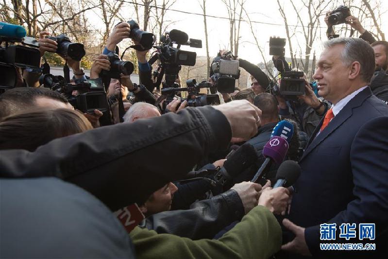 4月8日,在匈牙利首都布达佩斯,匈牙利总理欧尔班在投票站投票后接受媒体采访。四年一度的匈牙利国会选举8日拉开帷幕。当地时间早晨6时,全国1万多个投票站准时开始投票。匈牙利国内选民近800万。按规定,选民可在当晚7时以前完成投票。初步计票结果预计于当晚公布。新华社发(弗尔季·奥蒂洛摄) |