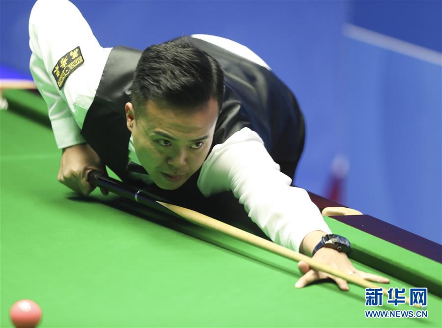 4月22日,傅家俊在比赛中。当日,在英国谢菲尔德克鲁斯堡剧院进行的2018年世界斯诺克锦标赛首轮比赛中,中国选手吕昊天以10比5战胜中国香港选手傅家俊,晋级第二轮。新华社记者韩岩摄
