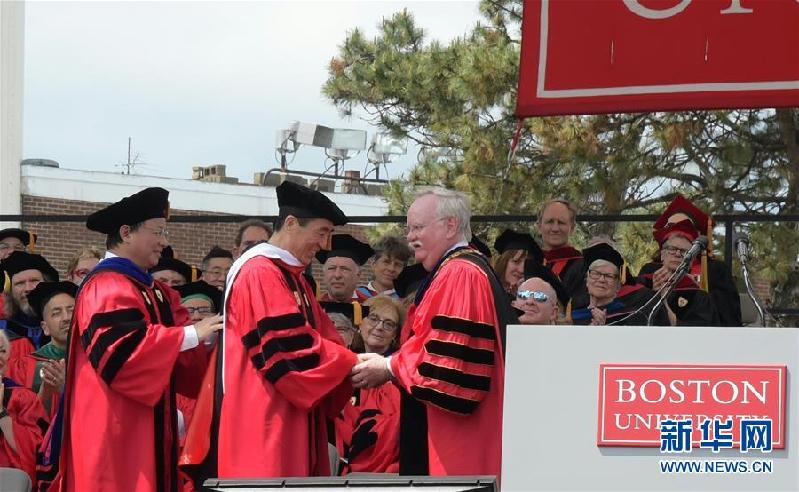5月20日,在美国波士顿,中国导演张艺谋(前中)出席波士顿大学2018届毕业典礼。在美国波士顿大学20日举行的2018届毕业典礼上,中国导演张艺谋被授予波士顿大学人文艺术荣誉博士学位。新华社记者徐剑梅 摄 |