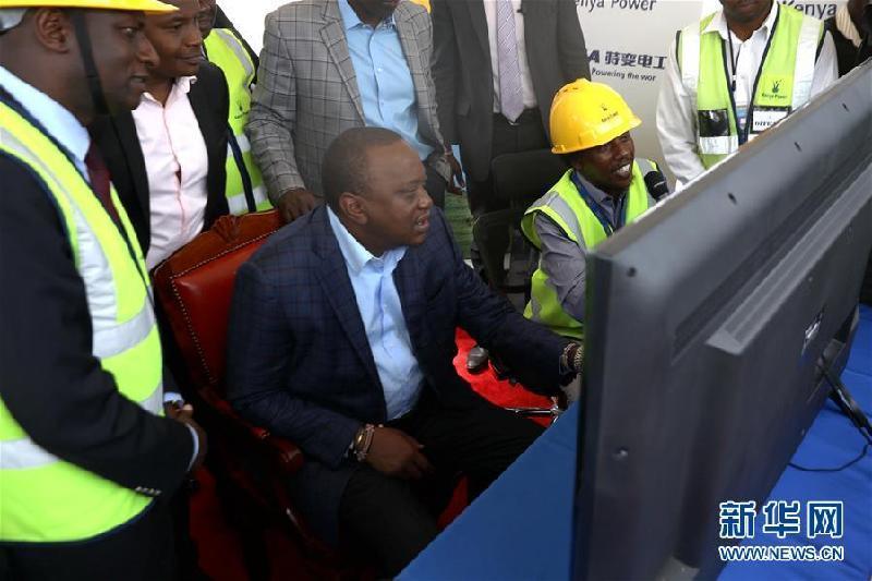 5月30日,在肯尼亚内罗毕,工作人员向肯尼亚总统肯雅塔(中)介绍变电站项目。由中国企业特变电工股份有限公司承建的“220千伏气体绝缘变电站”项目30日在肯尼亚首都内罗毕正式落成,这一项目将助力肯尼亚首都内罗毕城区电网升级。新华社记者王腾摄