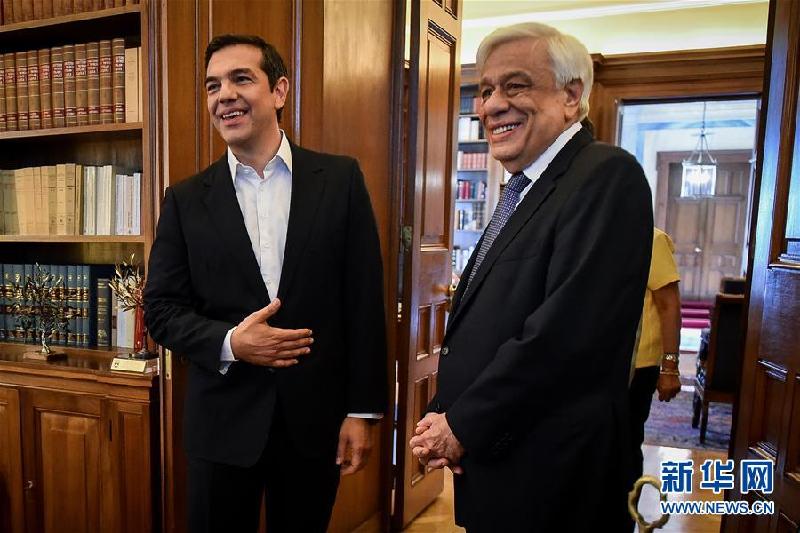 6月12日,在希腊雅典,希腊总理齐普拉斯(左)向希腊总统帕夫洛普洛斯通报他与扎埃夫的通话情况。马其顿总理扎埃夫12日宣布,马其顿和希腊就国名问题达成协议,马其顿国名将更改为“北马其顿共和国”。扎埃夫与希腊总理齐普拉斯就马其顿更改国名问题进行了长时间讨论。新华社发(马里奥斯·罗洛斯摄) |