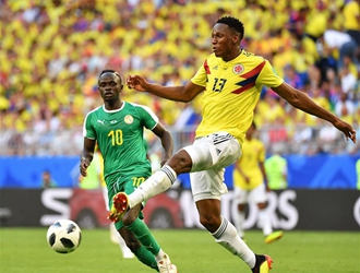 6月28日,波兰队球员莱万多夫斯基(左)在比赛中错失进球机会后懊悔。当日,在伏尔加格勒进行的2018俄罗斯世界杯足球赛H组小组赛中,日本队以0比1不敌波兰队,排名小组第二晋级十六强。 新华社记者 杨磊 摄