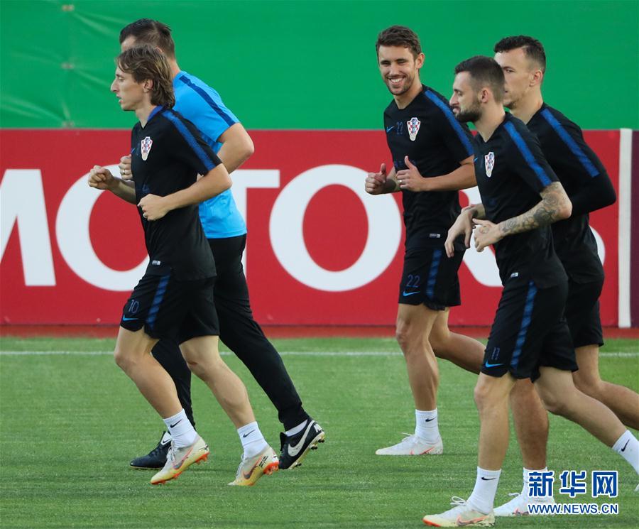 克罗地亚队在位于莫斯科卢日尼基体育场附近的训练场进行训练,备战与英格兰队的俄罗斯世界杯足球赛半决赛。