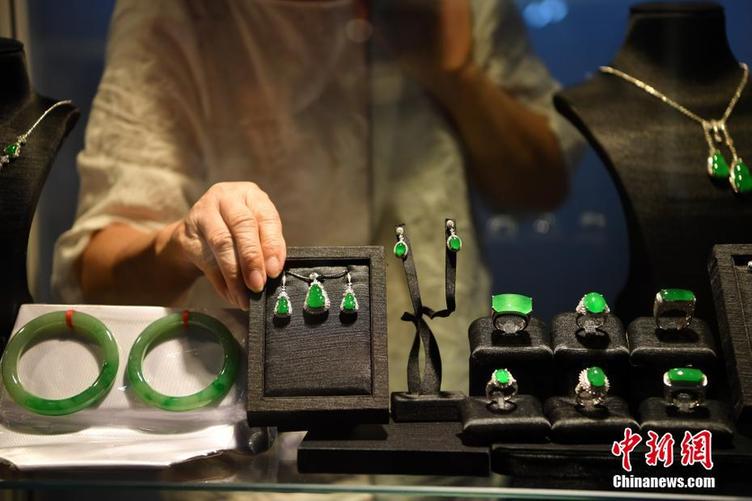 7月10日,台湾珠宝商带展品参展。当日,2018中国昆明国际石博览会开幕。来自22个国家和地区的参展商,携带翡翠、玛瑙、彩色珠宝、观赏石等大量奇珍异宝亮相,吸引了众多市民观赏。中新社记者刘冉阳 摄