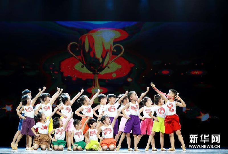 7月25日,昆明市艺术学校的学生在表演舞蹈《弦乐悠扬》。 由中国舞蹈家协会主办的第五届“荷花少年”全国舞蹈展演于7月23日至7月25日在北京舞蹈学院举行。 新华社记者 潘旭 摄