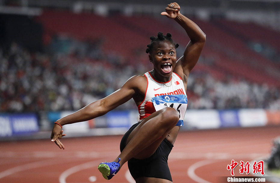 田径女子百米冠军:巴林选手爱迪翁。中新社记者 杜洋 摄
