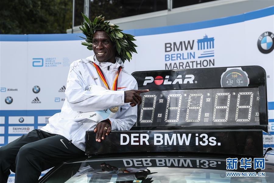 9月16日,男子组冠军、肯尼亚选手基普乔盖在赛后与成绩牌合影。 新华社记者单宇琦摄 新华社柏林9月16日电 里约奥运会冠军、34岁的肯尼亚马拉松名将基普乔盖在16日的柏林马拉松赛上以2小时01分39秒创造新的马拉松世界纪录,首次将人类马拉松速度提升至2小时02分以内。 基普乔盖是本次柏林马拉松的卫冕冠军,也是夺冠最大热门。他当天的半程用时为1小时01分08秒,跑至30公里处用时已比世界纪录快了39秒,最终强势打破了同胞基梅托2014年在柏林马拉松上创造的2小时02分57秒的世界纪录。 “我不知道怎么描述这样的一天。”基普乔盖打破世界纪录后说,“他们说你此前在这里错失了两次破纪录的机会,你不能再第三次错过。” 赛事组委会起初认定基普乔盖的成绩为2小时01分40秒,但经过再次确认后,改为了2小时01分39秒。 当天女子组比赛中,肯尼亚老将切罗诺以2小时18分11秒夺冠并刷新了柏林马拉松的女子赛会纪录。 |