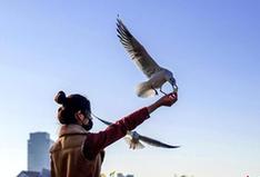 11月26日,在宁夏银川市海宝公园,成群的红嘴鸥吸引市民驻足观赏和互动。近年来,“国际湿地城市”银川加大对湿地的保护,生态环境日益改善,湿地野生鸟类逐渐增多,已形成人鸟和谐的新型生态家园。每年冬春季节,大批迁徙的红嘴鸥都会如约而至,成为银川一道靓丽的风景。中新社记者李佩珊 摄