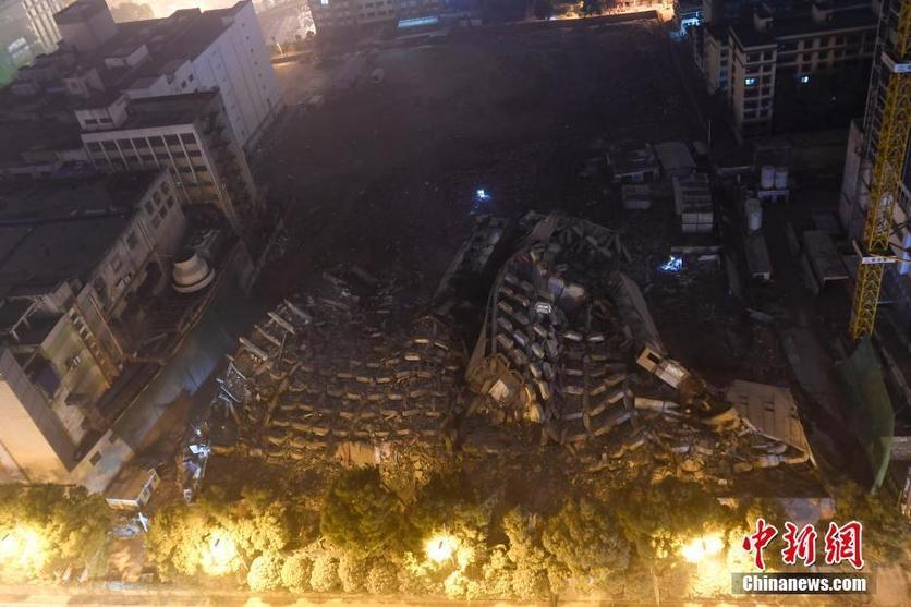 1月20日凌晨,长沙市旭华大厦农业银行综合楼成功爆破。该楼高62.3米,技术人员运用了炸药432公斤,雷管7300枚进行爆破,爆破时长2.81秒。图为被夷为平地的大楼。中新社记者杨华峰 摄