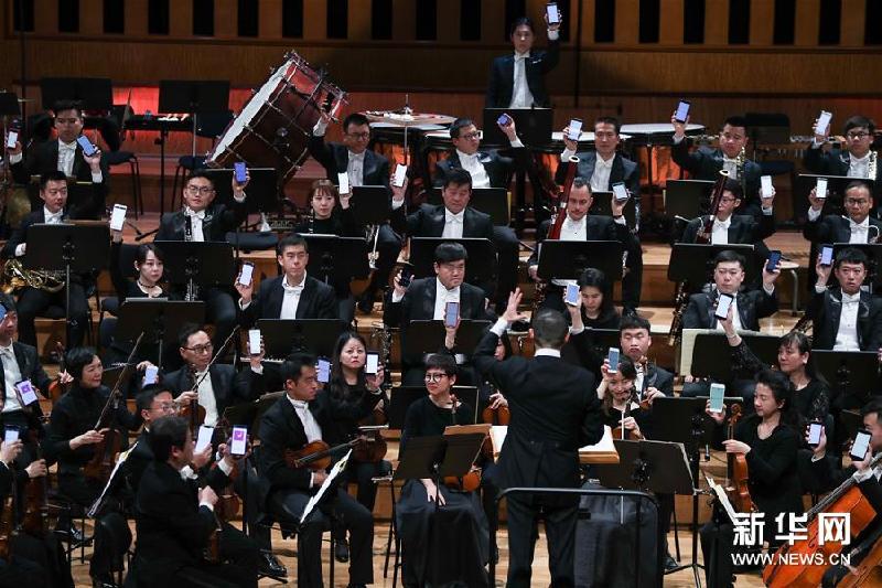 1月29日,在比利时首都布鲁塞尔,演奏者在新年音乐会上将手机声音融入音乐表演。新华社记者郑焕松摄