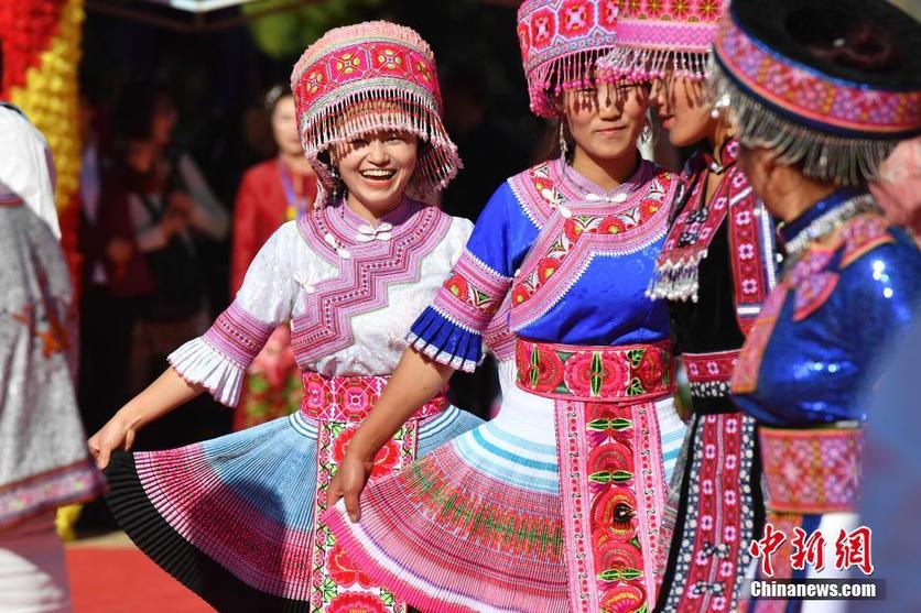 2月5日,苗族民众身着节日盛装登台表演。当日是农历大年初一,云南蒙自市民众身着节日盛装,表演传统节目,欢度新春佳节。中新社记者 刘冉阳摄