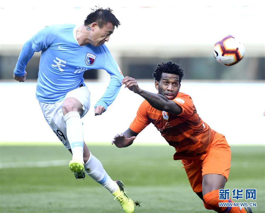 图为天津天海队球员王永珀(左)在比赛中头球攻门。 新华社记者岳月伟摄 2019年3月29日至31日,2019赛季中超联赛第三轮比赛全部战罢。上海上港、广州恒大和北京国安三支亚冠球队均在客场小胜,同以三连胜开局。北京国安入籍球员李可首发出场,成为首位在中超出场的入籍球员。天津泰达主场战胜广州富力,上海申花客场战胜河南建业,重庆斯威主场1球小胜深圳佳兆业,三队均取得了新赛季中超的第一场胜利。天津天海则惨遭三连败,江苏苏宁老将汪嵩为球队建功,连续18个联赛赛季取得进球。 3月31日,天津天海主场迎战山东鲁能。处于托管中的天津天海本赛季更换了主场,与同城球队天津泰达共用天津奥体中心体育场(“水滴”),但新主场并没给天海带来好运,比赛开始7分钟就率先丢球,客队吴兴涵从左路内切射门,将球打入死角。鲁能随后获得多次扩大比分的机会,但都被天海门将张鹭一一化解。场面被动的天海在第36分钟在鲁能门前打出配合,郑达伦完成最后一击,将比分扳成1比1。 下半场的天海在踢了10多分钟后突然崩盘,连续丢球。先是在第60分钟,中后卫权敬源禁区内手球被判点球,佩莱一蹴而就;随后在第64分钟,周海滨突入禁区推射入网;第68分钟,王大雷手抛球发动反击,张弛打出精彩弧线球入网。 短时间内连续丢球和1比4的分差,使天海队的士气极大受挫,但又无力组织起有效的进攻,场面较为难看。补时阶段,替补上场的杨旭反越位成功,为天海打入挽回颜面的一球,最终比分定格为2比4。 |