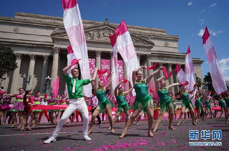 4月13日,在美国首都华盛顿,人们参加樱花节游行。当日,华盛顿举行樱花节游行。樱花节游行是华盛顿的年度重要节日之一,每年吸引大批游客参加。新华社记者 刘杰 摄 |