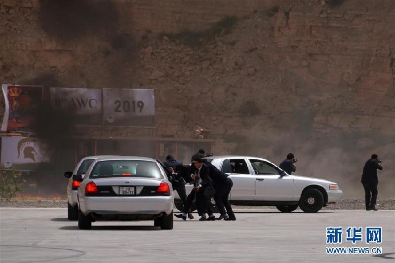 4月14日,在约旦首都安曼郊区的阿卜杜拉国王特战训练中心,约旦特种部队在开幕式上进行反恐表演。第十一届“勇士竞赛”国际特种兵比武当地时间4月14日在约旦首都安曼郊区的阿卜杜拉国王特战训练中心拉开战幕。 新华社记者 林晓蔚摄 |