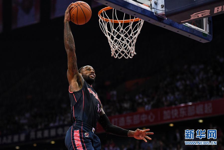 4月15日,广东东莞银行队球员威姆斯在比赛中扣篮。 当日,在2018-2019赛季中国男子篮球职业联赛(CBA)季后赛半决赛第四回合比赛中,广东东莞银行队客场以135比117战胜深圳马可波罗队,从而以总比分4比0晋级决赛。 新华社记者毛思倩摄
