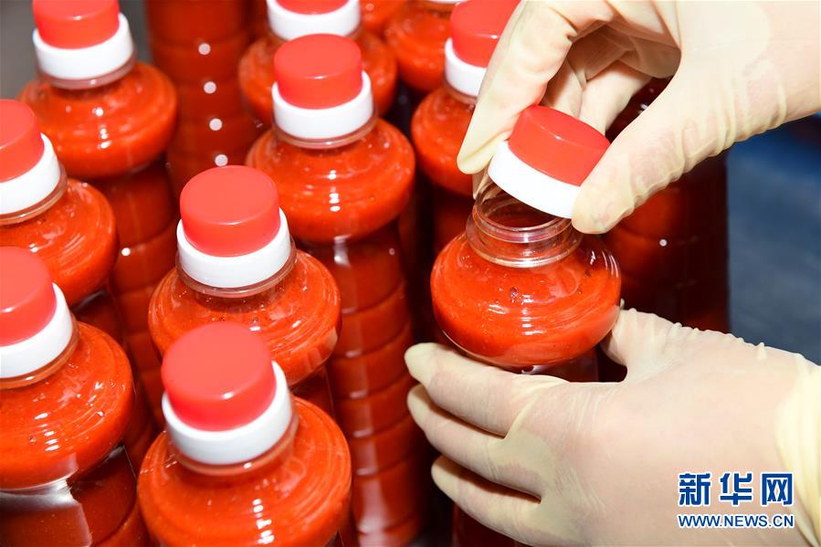 5月26日,工人在贵州省黔东南苗族侗族自治州麻江县明洋食品公司生产车间灌装古法酸汤。新华社记者 杨楹 摄