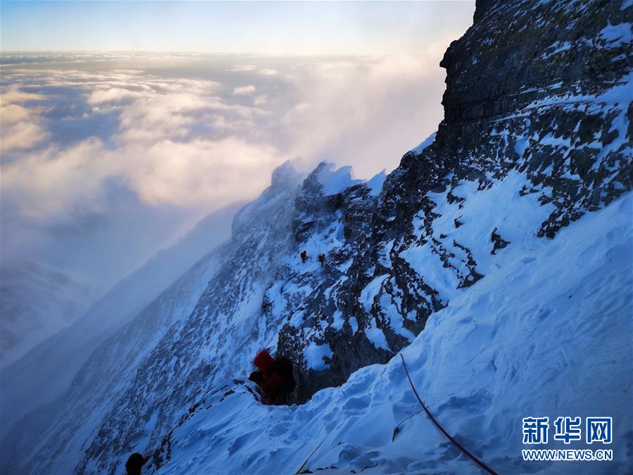 5月27日,2020珠峰高程测量登山队正在向珠峰峰顶挺进。 当日2时10分许,2020珠峰高程测量登山队8名队员陆续从海拔8300米的突击营地出发,向着世界海拔最高的珠峰峰顶挺进。 新华社特约记者 扎西次仁 摄