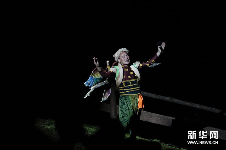 7月29日晚,一名演员在《印象武隆》中表演。 7月29日晚,复演后的第89场大型山水实景演出《印象武隆》在重庆市武隆区仙女山镇桃园大峡谷演出剧场上演,当晚的观众数量近700人。据介绍,《印象武隆》自今年5月1日复演后,观众数量在稳步回升。 新华社记者 刘潺 摄
