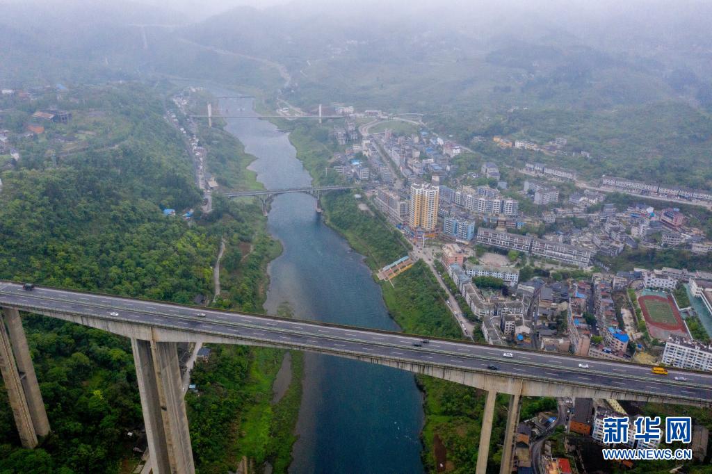 贵州省乌江特大桥(4月19日摄,无人机照片)。新华社记者 欧东衢 摄