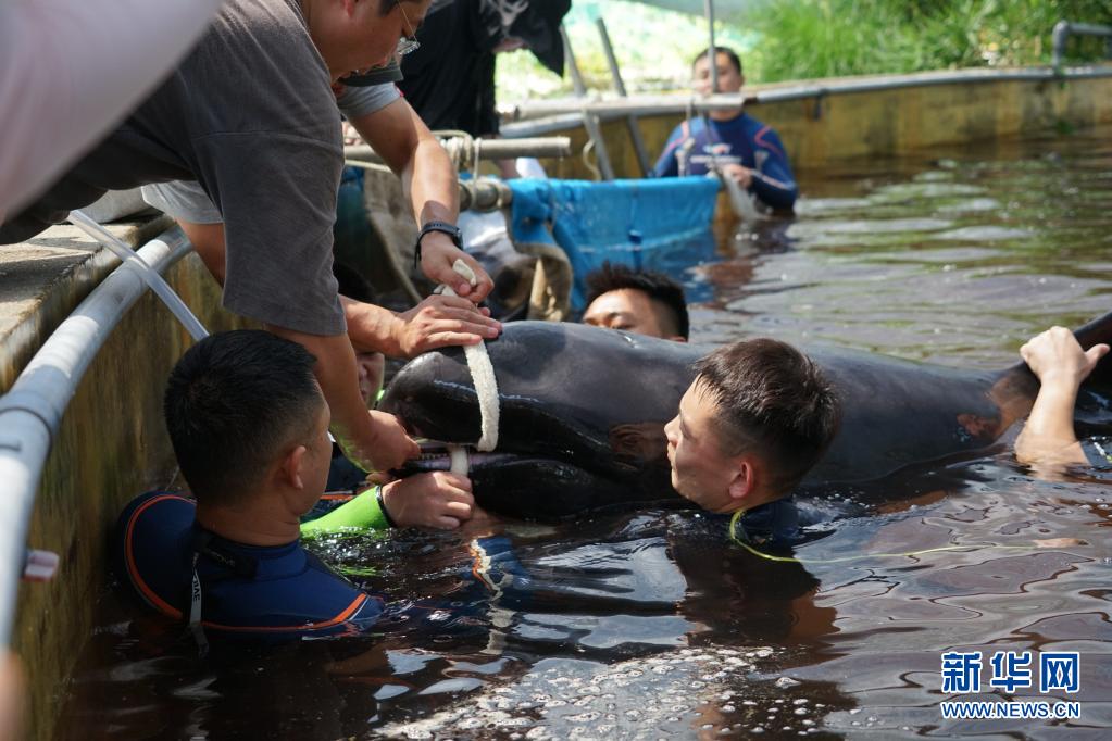 浙江台州搁浅瓜头鲸中6头将回归海洋