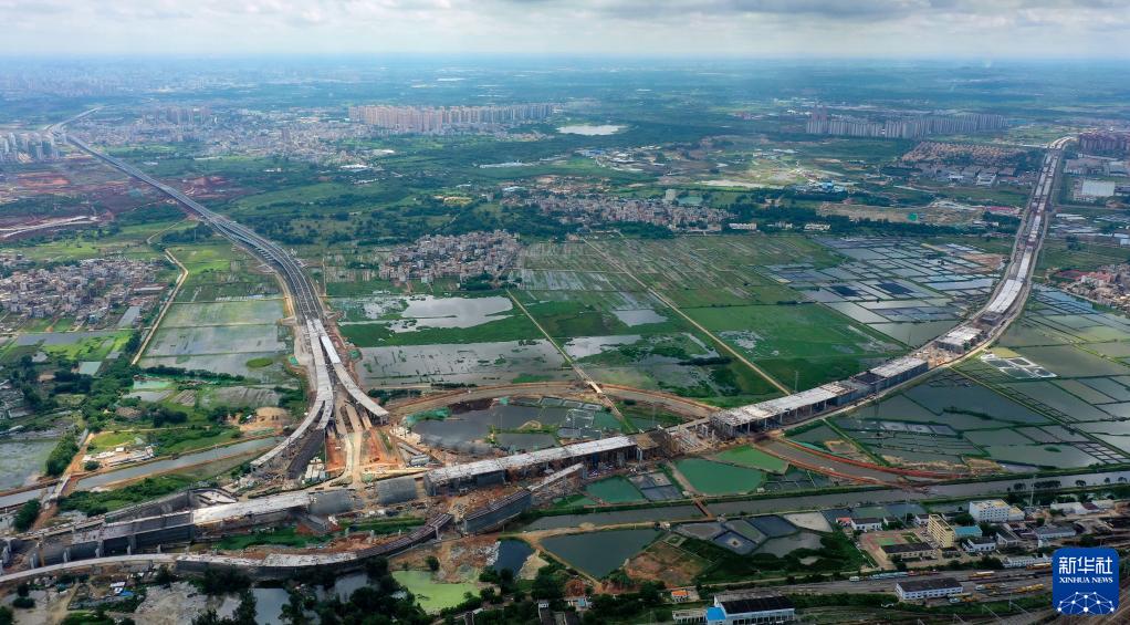 9月2日拍摄的沈海高速海口段项目施工工地(无人机照片)。