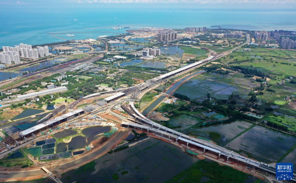 9月2日拍摄的沈海高速海口段项目施工工地(无人机照片)。
