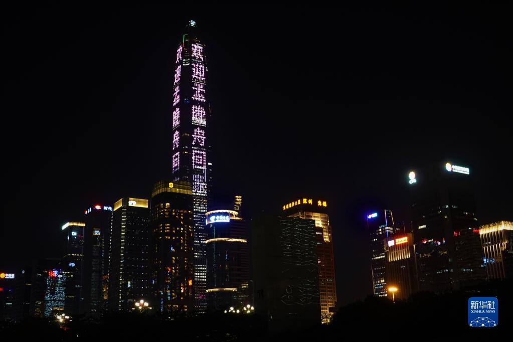 9月25日,深圳平安金融中心打出灯光效果,“欢迎孟晚舟回家”。新华社记者 印朋 摄 |