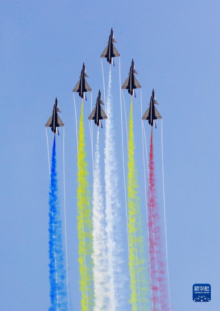 9月28日,中国空军八一飞行表演队在第十三届中国国际航空航天博览会开幕式上进行飞行表演。
