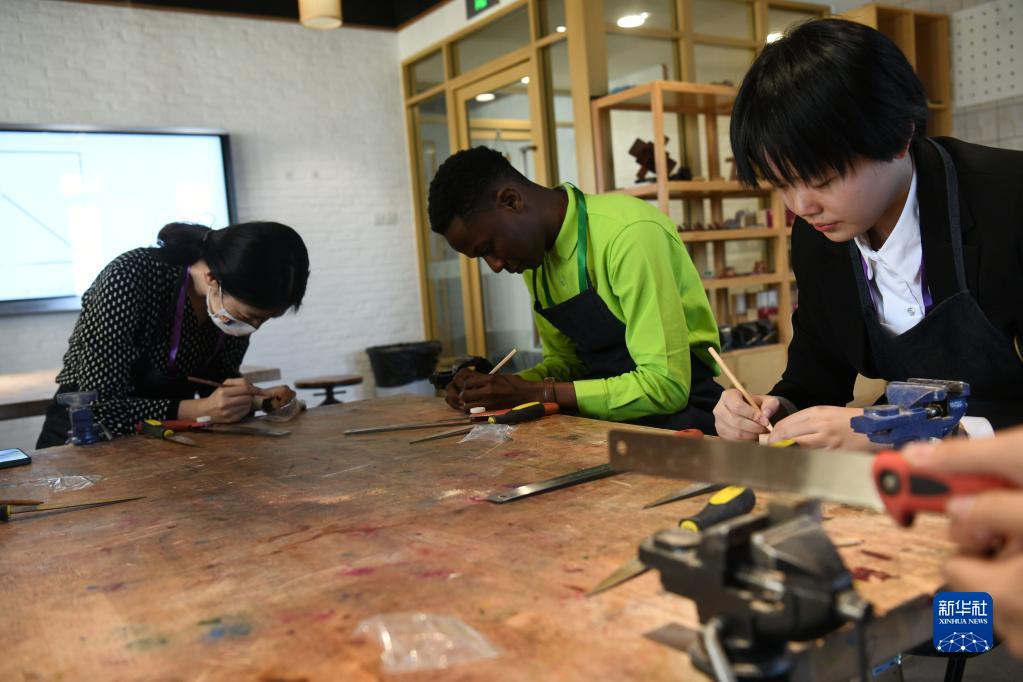 10月19日,中非青年体验木工。