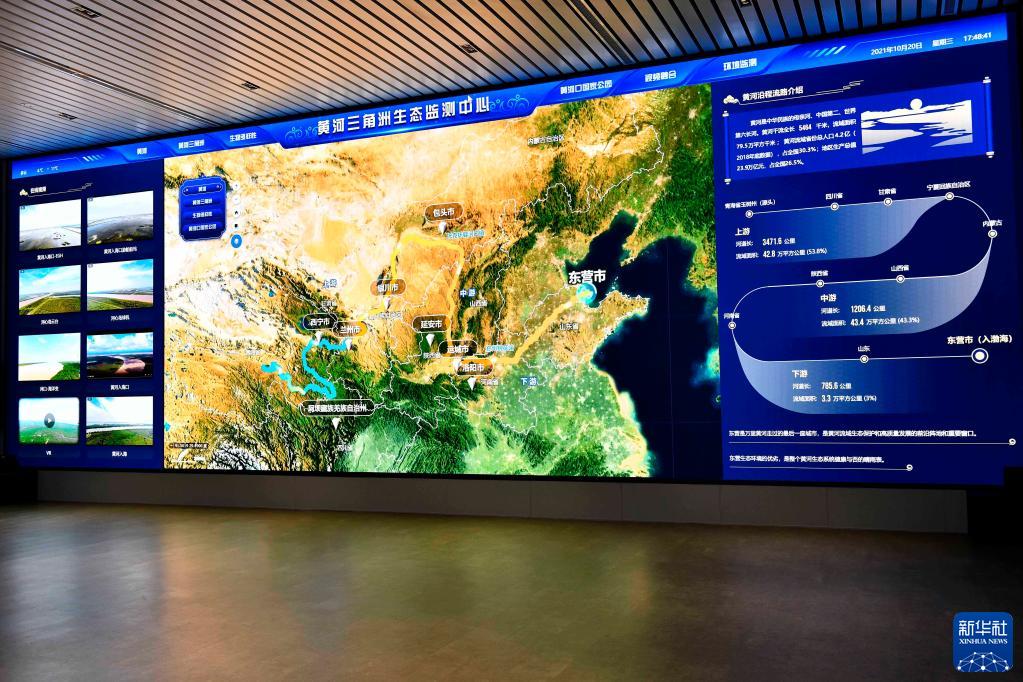 这是山东黄河三角洲国家级自然保护区黄河三角洲生态监测中心智慧大屏(10月20日摄)。
