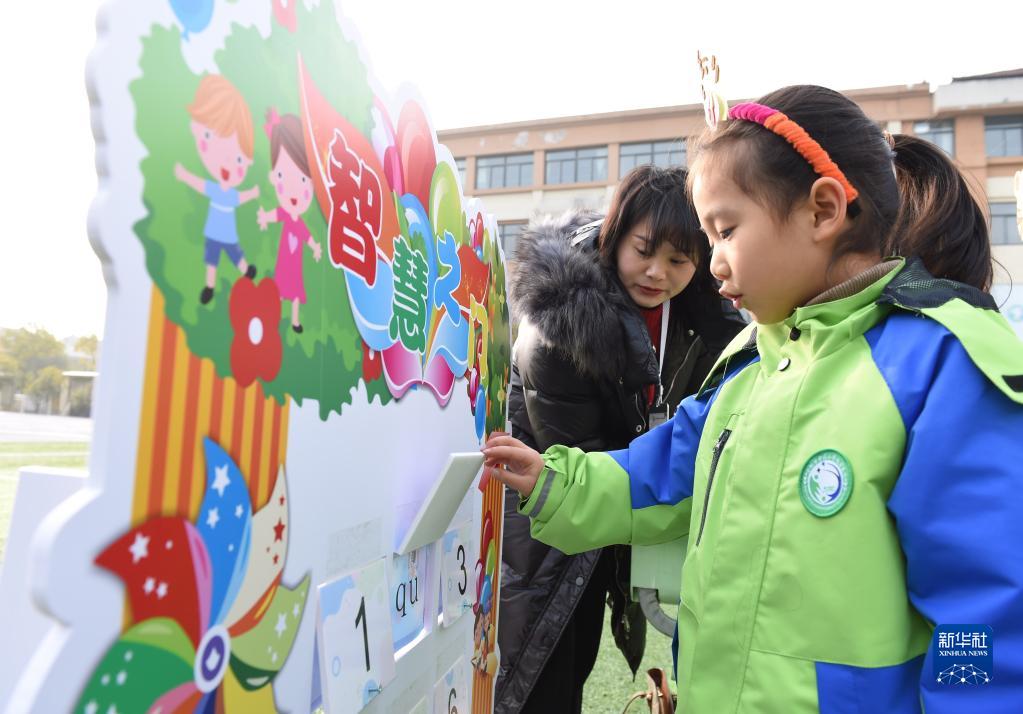1月11日,在合肥市梦园小学教育集团枫林路学校,学生在参加拼音知识的测评项目。