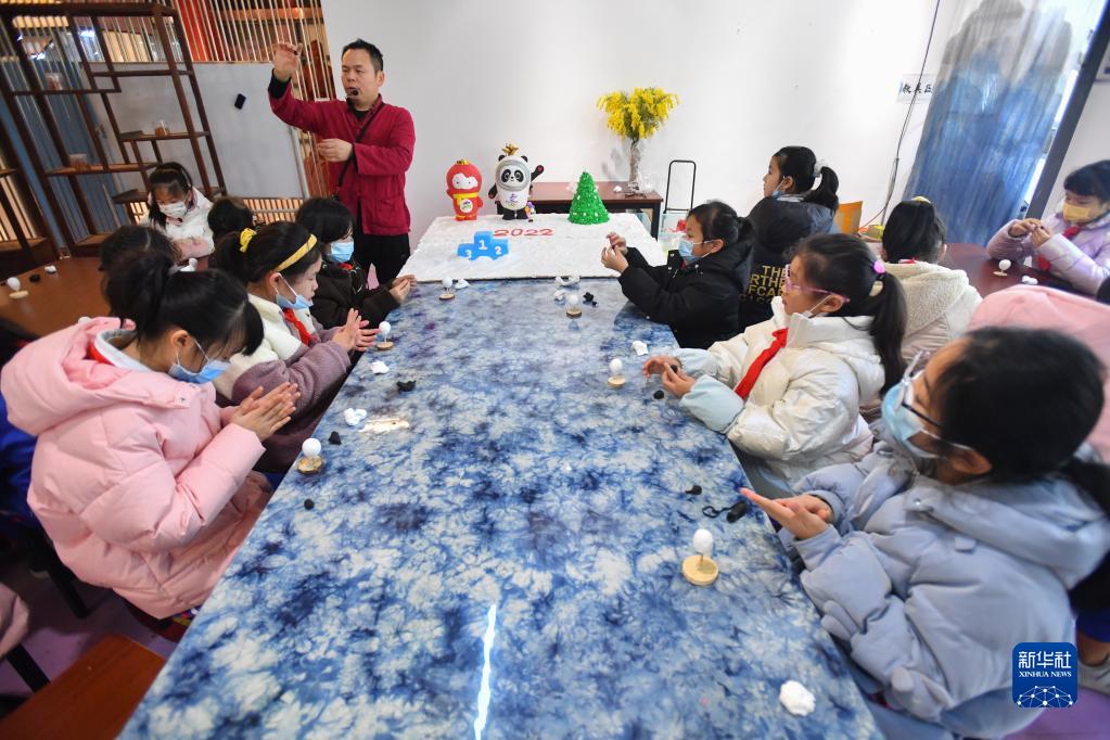 2022年北京冬奥会正在火热进行中。2月13日,在湖南省长沙市雨花非遗馆,非遗“面塑”艺人龙玉平和长沙市雨花区砂子塘新世界小学的小朋友一起用面、软陶等材料,手工捏制“冰墩墩”,通过寓教于乐的方式展示非遗技艺的魅力,传递冬奥精神,为冬奥健儿送上美好的祝福。