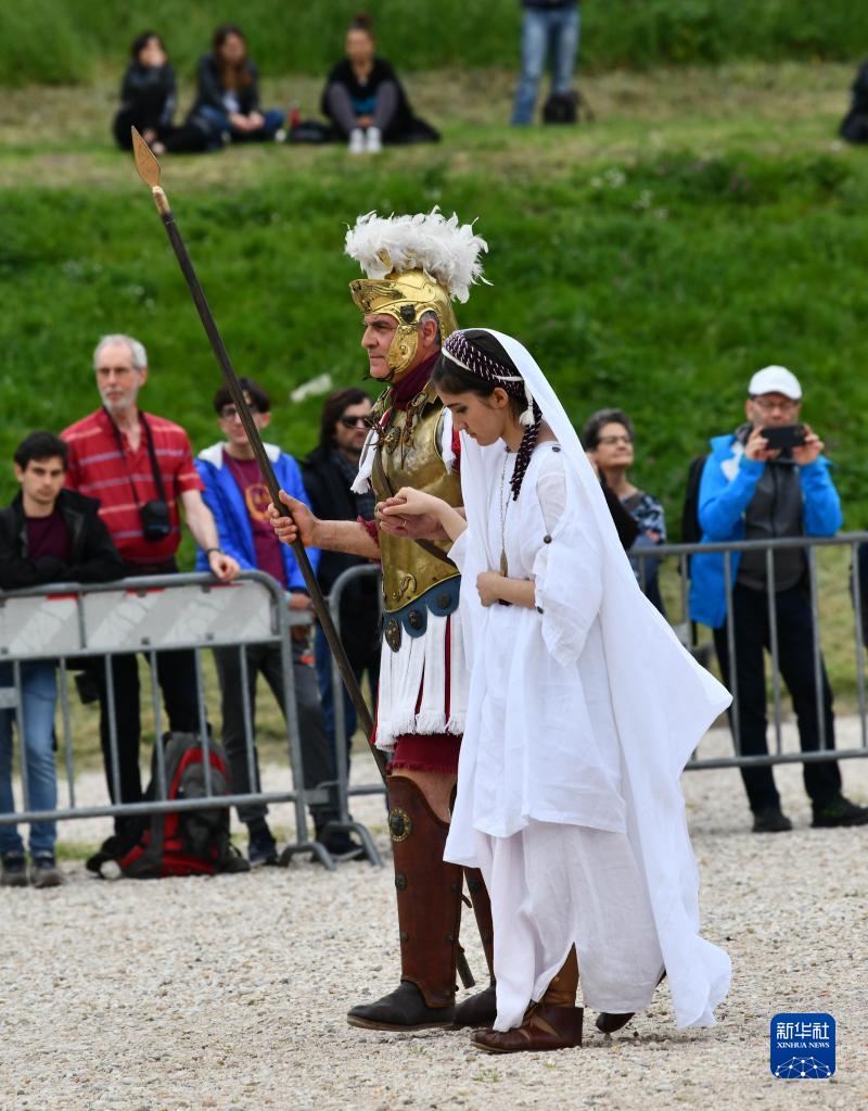 4月21日,人们在意大利罗马参加“重现”罗马建城的活动。